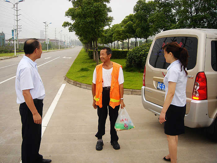 7月22日,由公司總經(jīng)理朱曉梅,黨支部書(shū)記、工會(huì )主席盛傳樹(shù)等成立的慰問(wèn)小組帶著(zhù)防暑降溫用品來(lái)到來(lái)到當涂縣經(jīng)濟開(kāi)發(fā)區管理處,對在高溫天氣下仍戰斗在第一線(xiàn)的員工標示了衷心的感謝和誠摯的慰問(wèn),并將防暑降溫用品親手送到每一位員工手中。