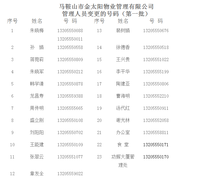 近日,我公司對管理人員聯(lián)系電話(huà)進(jìn)行了更新,小號使用6位數,88+后6位數。原來(lái)使用的聯(lián)通號碼不變,原使用的電信號碼保持到年底。特此通知。