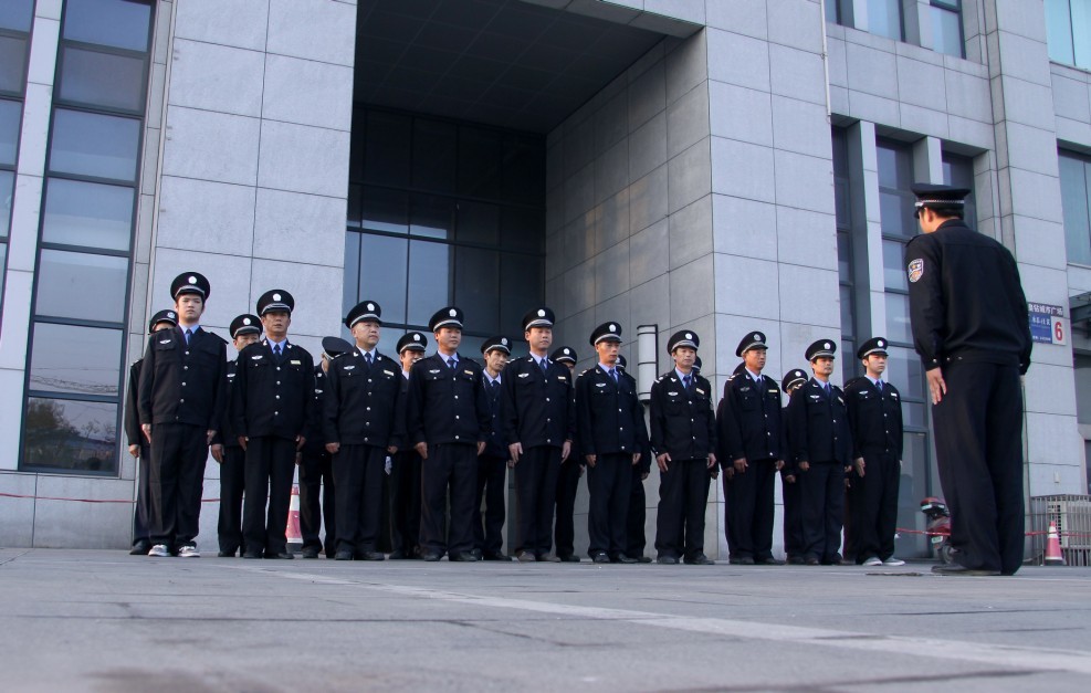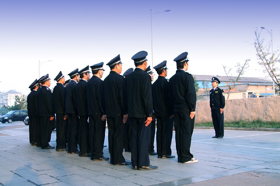 10月17日周一清晨,功輝大廈管理處保安員工在功輝大廈門(mén)口集合,堅持晨訓制度。