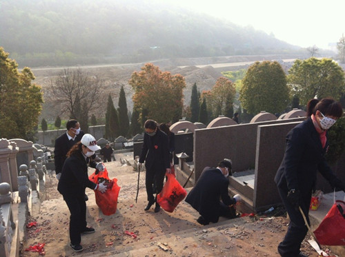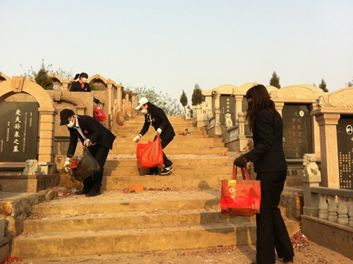 2013年4月4日,金太陽(yáng)義工社在得知清明祭祀人員多、環(huán)境不理想的消息后,社員們自發(fā)要求放棄休息的時(shí)間前往陵園,為城市環(huán)境獻出自己的一份力量。