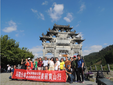 為激勵公司員工工作熱情,緩解工作壓力,增進(jìn)各職能部門(mén)的協(xié)作精神,金太陽(yáng)物業(yè)集團于2017年9月16日至17日組織管理人員“黃山二日游”活動(dòng),本次活動(dòng)由朱曉軍經(jīng)理?yè)眯嘘犼犻L(cháng),十六名管理者熱情參與。 16日清晨,旅行隊整頓行裝從公司啟程,經(jīng)四個(gè)小時(shí)的車(chē)程到達了黃山黟縣,午間聚餐后,大家一掃旅途中坐車(chē)的疲憊,正式開(kāi)始游覽行程。