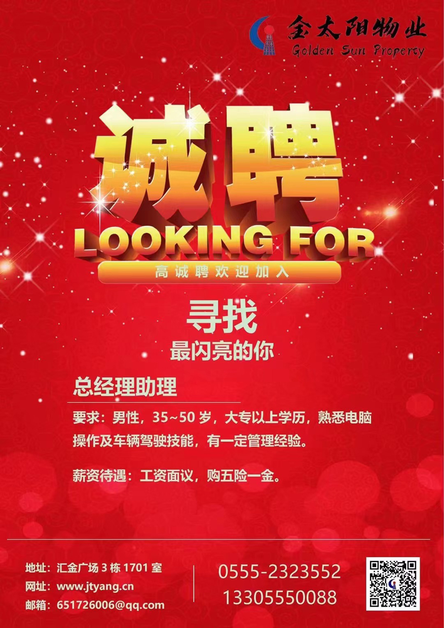 金太陽(yáng)誠聘總經(jīng)理助理