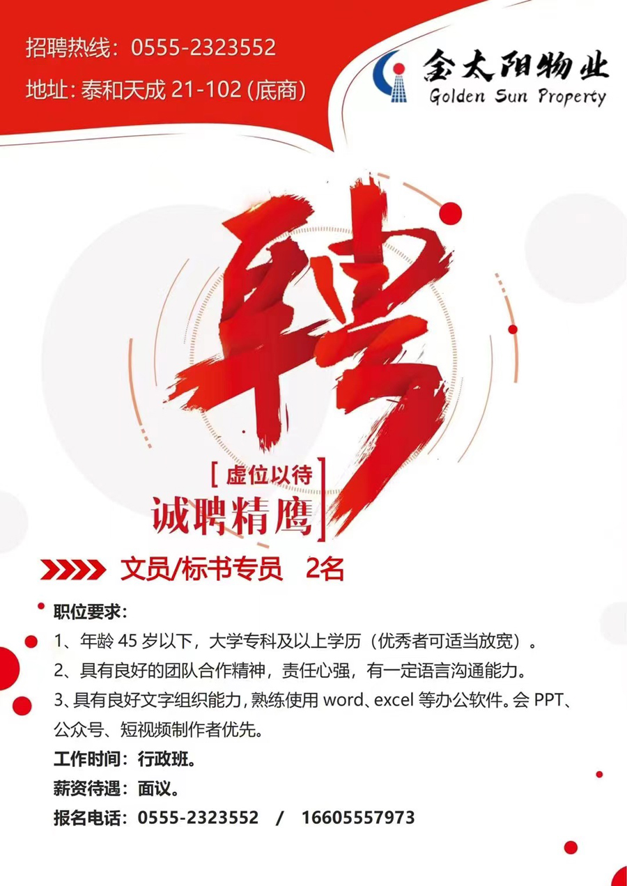 金太陽(yáng)誠聘文員標書(shū)專(zhuān)員