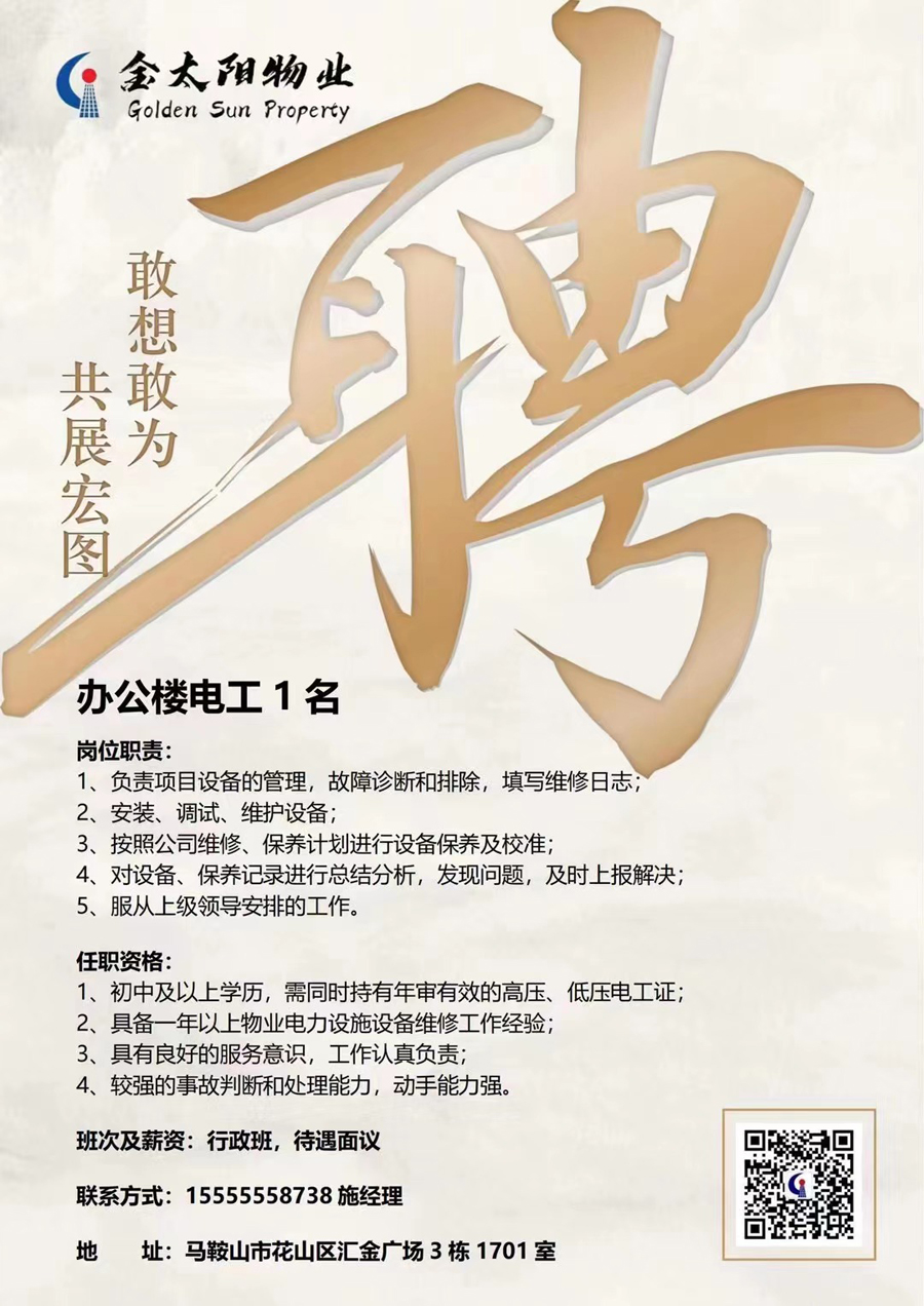 金太陽(yáng)誠聘辦公樓電工