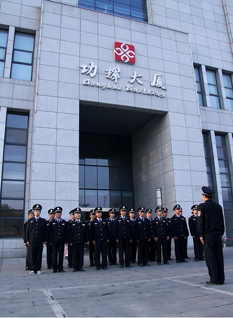 10月17日周一清晨,功輝大廈管理處保安員工在功輝大廈門(mén)口集合,堅持晨訓制度。